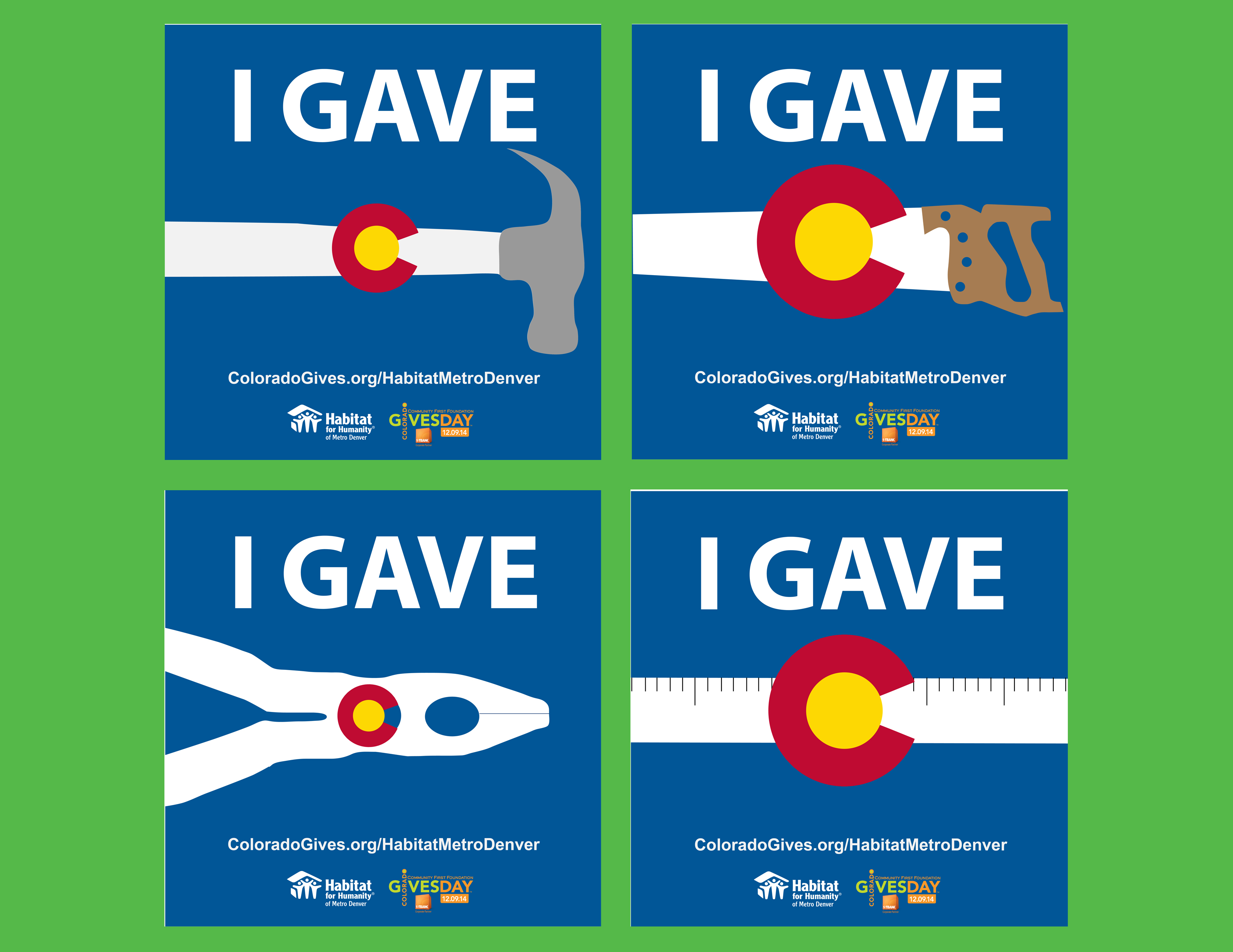 I designed this series of graphics for Habitat for Humanity of Metro Denver to promote its Colorado Gives Day campaign in the fall of 2014. A similar graphic feel was used on the organization’s website, print materials, blog and social media, creating a cohesive message and recognizable brand for the campaign.
