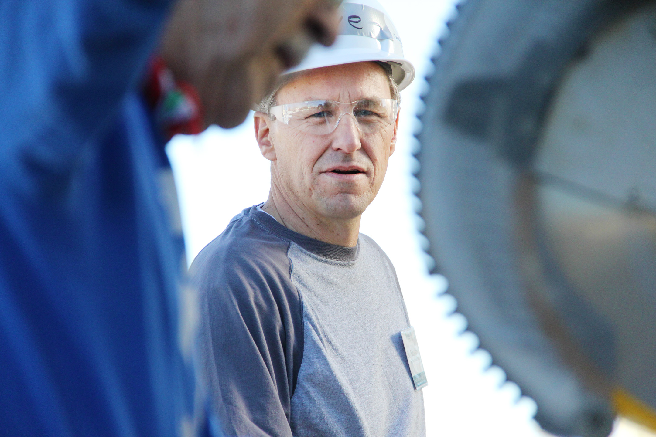 A pastor from Denver learns the tools of the trade on a Habitat for Humanity build site in the Northeast corner of the city. November 2014.