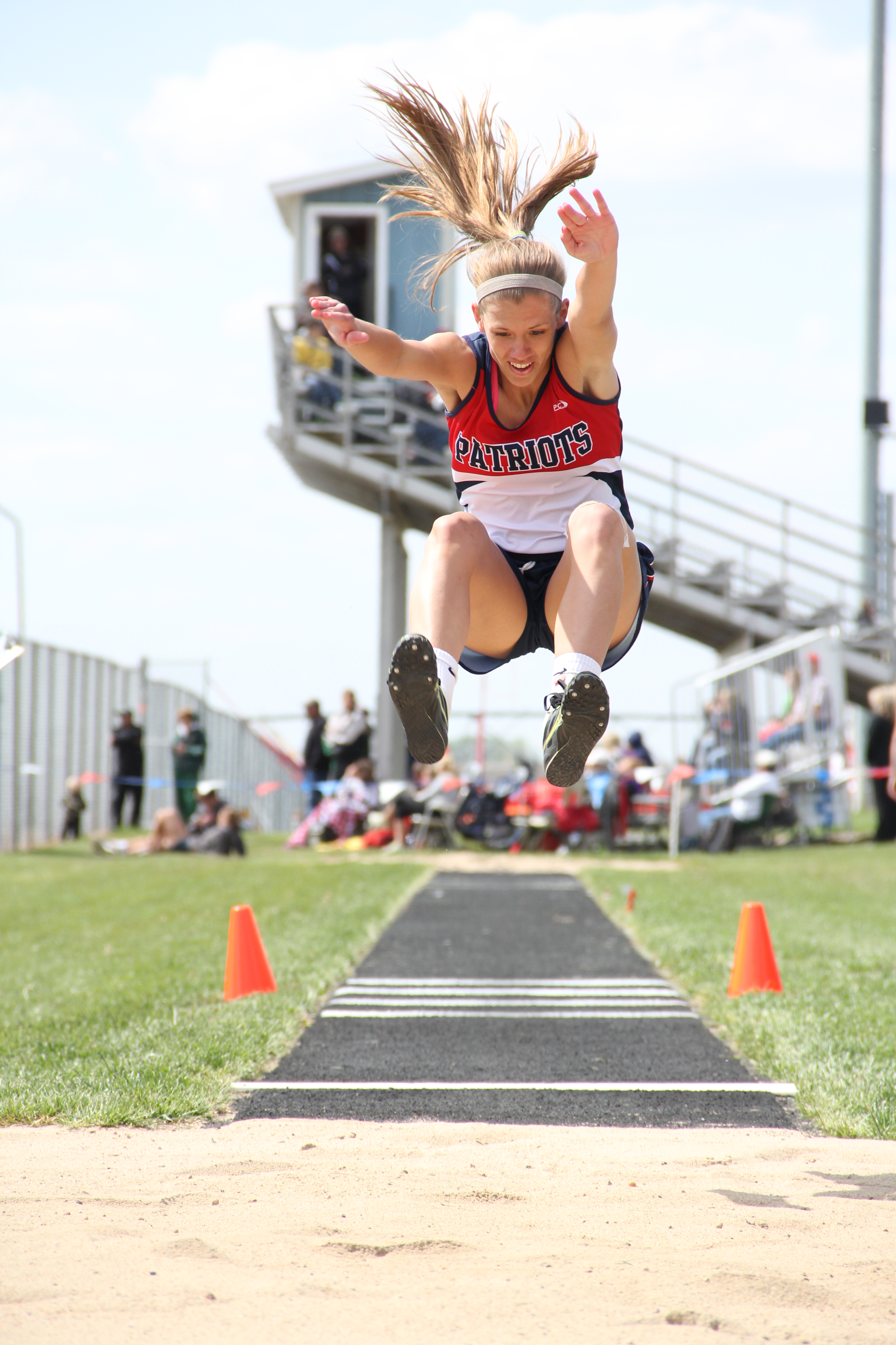 Adams Central junior Sarah Hessen competes in the long jump at the Nebraska Class C District Track and Field meet in Hastings on May 15, 2014.